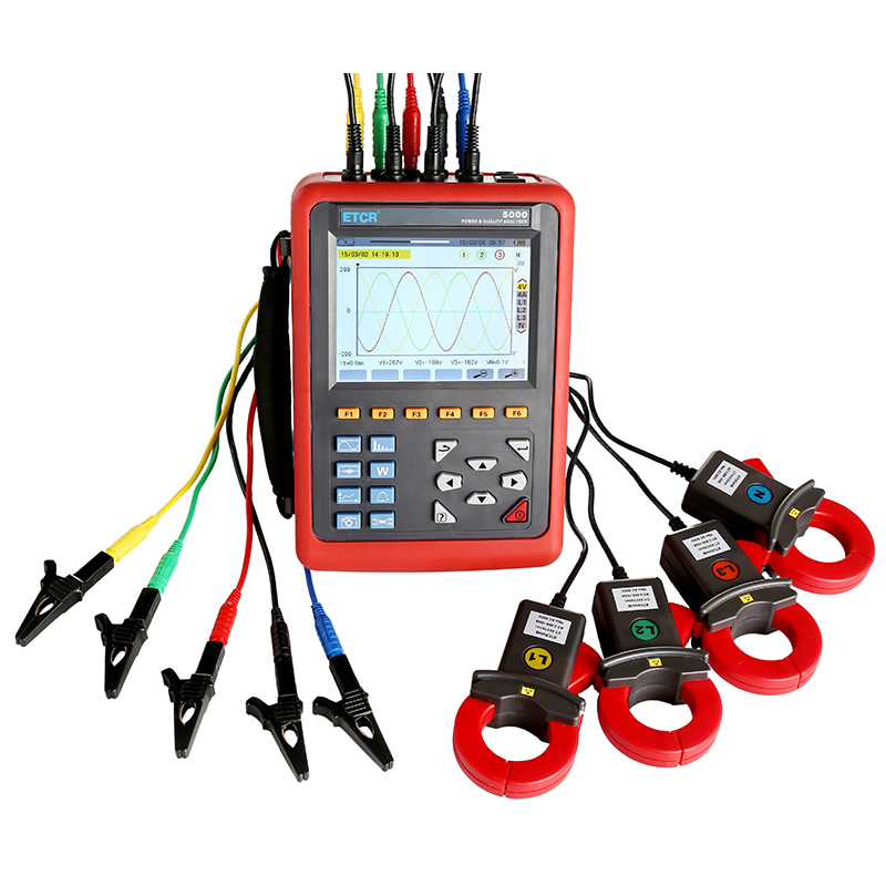 ETCR5000電能質量分析儀是我公司精心研制的一款專為現場測試的三相、多功能、智能化、人機操作簡潔的綜合型測試儀器。具有容易使用,超大液晶彩屏顯示,高分辨率,中英文雙語操...ETCR5000電能質量分析儀是我公司精心研制的一款專為現場測試的三相、多功能、智能化、人機操作簡潔的綜合型測試儀器。具有容易使用,超大液晶彩屏顯示,高分辨率,中英文雙語操作界面,防振結構外殼等特點。可同時測量4路電流(ABC三相及中性線電流),4路電壓(ABC三相電壓及中性線對地電壓)、電流電壓的峰值、一段時間內的蕞大蕞小值、三相不平衡度、短時電壓閃變、變壓器K因數、有功功率、無功功率、視在功率、功率因數、位移功率因數、有功電能、無功電能、視在電能、諧波比、總諧波失真度等;顯示電流電壓的實時波形、相量圖、諧波比柱形圖;動態捕捉電壓電流瞬時變化,監測啟動電流,監測各電力參數并生成告警列表,長時間記錄測試數據并生成趨勢曲線圖等功能。