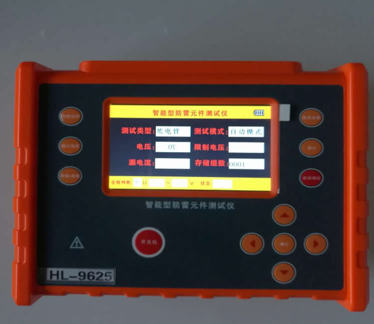 防雷元件測試儀由中大規(guī)模集成電路組成。本表輸出功率大,起始動作電壓測量范圍:0-2000V,漏電流測量范圍:0.1~199.9uA,絕緣電阻:0~1000MΩ,重復穩(wěn)定性好,一鍵測量方便快捷。
