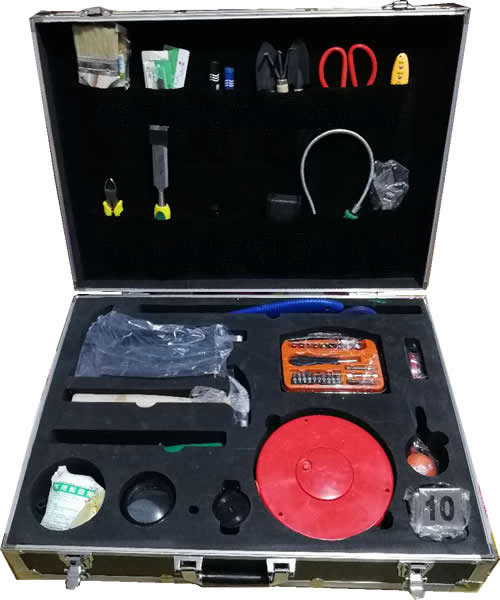 箱子本體為高級工程塑料箱,堅固,防摔,防水、防塵,并容易清洗,中間配置插頁,背貼高彈海綿,插頁上有多個插口,可盛裝不同工具.箱內加配防火物證專用袋, 袋子要求雙層密封,設置專用剪切拆封口,尼塑材質,可耐150溫度,內置活性炭片,炭片具備吸附效應。采用尼龍扣扎緊
